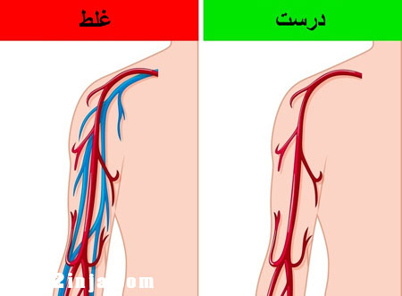 ۱۱- خون فاقد اکسیژن، آبی رنگ است