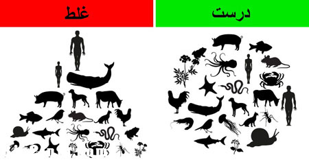 ۲- انسان در رأس زنجیره ی غذایی قرار دارد