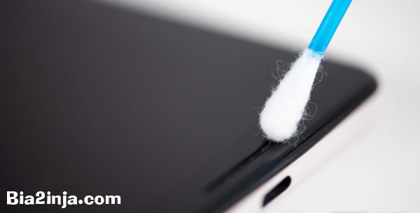 ۳٫ با گوش‌پاک‌کن درزها و حفره‌های گوشی را پاک کنید