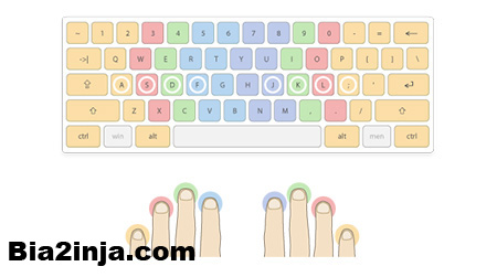 لازم به یادآوری است که علت مرتب نبودن دکمه های صفحه کلید به ترتیب الفبایی، آرایش آنها به ترتیب میزان کارایی است. ۸ کلید خانه، پرکاربردترین حروف صفحه کلید به شمار می روند. هر انگشت باید چندین کلید مختلف را بزند. در تصویر زیر می توانید علائم رنگی را مشاهده کنید: آنها به شما نشان می دهند کدام انگشت و کدام کلید با هم ارتباط دارند.
