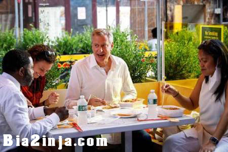 شهردار شهر نیویورک آمریکا در حال صرف صبحانه با کارمندان دفترش