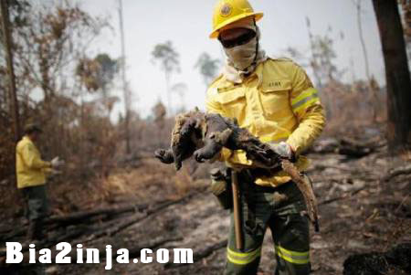 یک مورچه خوار سوخته در آتش سوزی جنگلهای آمازون برزیل