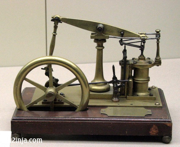 این دستگاه بین سالهای ۱۷۶۳ تا ۱۷۷۵ توسط مخترع اسکاتلندی جیمز وات و بر اساس ایدهها و تلاشهای قبلی موتور نیوکامن که در سال ۱۷۱۲ درست شده بود، ابداع شد. مزایای بیشمار این اختراع بر همگان روشن است و قطارها، کشتیها، کارخانهها و انقلاب صنعتی بر پایه این اختراع شکل گرفتند.