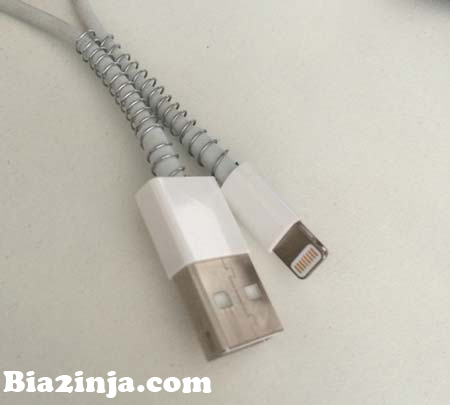 - فنر را از قسمت بالایی و پایینی اش به دور سیم شارژر آیفون بپیچید.