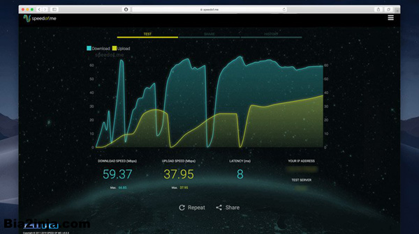 اگر به دنبال استفاده از روشی هستید که با استفاده از آن علاوه‌ بر سرعت اینترنت، از پایداری اینترنت خود هم مطلع شوید، Speedof.me یکی از بهترین سایت‌ها برای انجام این کار است. در زمان انجام این آزمایش، این سایت به‌خوبی به شما نوسانات سرعت در زمان دانلود و آپلود را نشان می‌دهد.