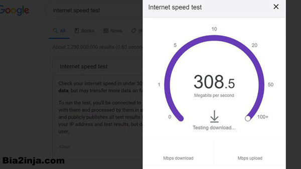 همچنین هرگاه شما عبارت internet speed test را در نوار مربوط به جست‌وجوی سایت گوگل بنویسید این تست اندازه‌گیری سرعت اینترنت به صورت پا‌پ‌اپ ظاهر خواهد شد. شما بعد از دیدن این تست می‌توانید بر روی دکمه‌ی آبی رنگ RUN SPEED TEST بزنید تا از سرعت دانلود، سرعت آپلود و میزان پینگ خود مطلع شوید.