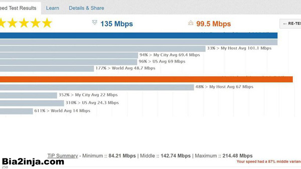 در واقع Ookla علاوه‌ بر دقت بالا در زمان اندازه‌گیری سرعت، دارای تاریخچه‌ای از تست‌های انجام شده برای مقایسه سرعت اینترنت در زمان‌های مختلف، سرور‌های گسترده در سرتاسر جهان و همچنین یک اپ کاربردی برای انجام تست در گوشی‌های اندرویدی و iOS است.