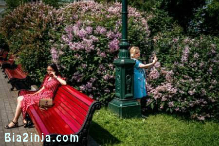 لذت از آفتاب و هوای آزاد در نخستین روز کاهش محدودیتهای قرنطینه سراسری در پارکی در شهر مسکو روسیه