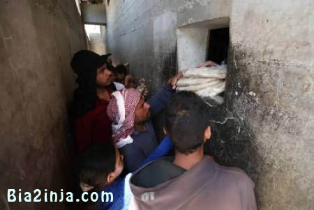 خرید نان از نانوایی در شهر” بینیش” در استان بحران زده “ادلب” سوریه