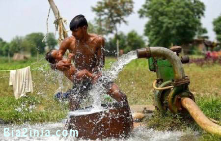 مرد هندی در حال حمام کردن فرزند خردسالش/ دهلی/ خبرگزاری فرانسه