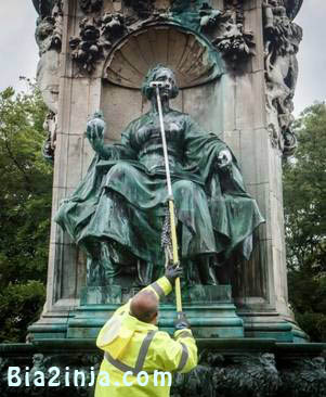 شستشوی مجسمه “ملکه ویکتوریا” پادشاه اسبق بریتانیا. معترضان ضدنژادپرستی در جریان تظاهرات خود در “لیدز”