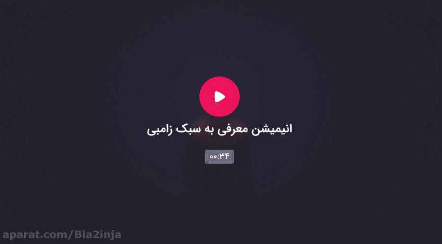 انیمیشن زامبی و یا تبلیغ سایت به سبک زامبی با موضوع معرفی سایت و یک نوع تبلیغ برای سایت بیا تو اینجا طراحی شده که معرفی سایت را به شیوه زامبی و ترسناک پیاده سازی شده است که از جلوه های زیبا و صداگذاری موزیک و صدای زامبی فوق العاده جالبی بهره میگیرد, زیبایی این انیمیشن را چندین برابر کرده است, همچنین نورپردازی و انتخاب رنگ ها در این انیمیشن به بهترین شکل رعایت شده است که توسط سایت بیا تو اینجا طراحی و ساخته شده است, مدت این انیمیشن ۰:۳۴ می باشد